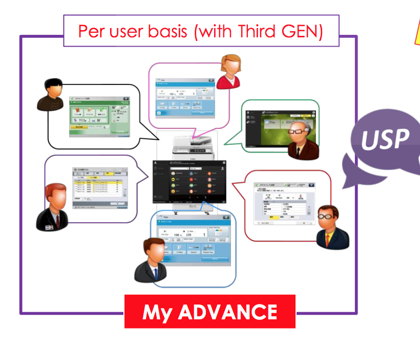 The My Advance Sync allows these settings to be synced across multiple printers in the same office, so even if a user customizes the setting on one printer in the office, the same settings will be applied for that user when he/ she uses another printer in the same office.