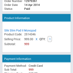 The products have been categorized properly for easy browsing. The applications provides a brief overview of the products in a list form and you can view any product’s details and pictures by clicking on it.